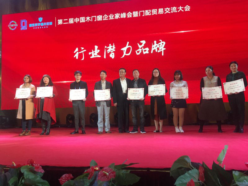2017年第二屆中國木門窗企業(yè)家在峰會上樹興木業(yè)有限公司舉獲得2017年中國木門窗行業(yè)的潛力品牌的榮譽(yù)